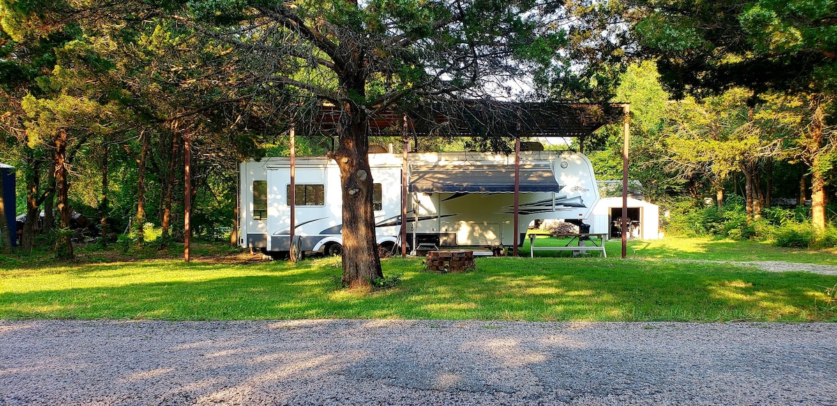 If you love the lake life but don't want to deal with packing, setting up and breaking down a campsite, we have the perfect solution! #1 Check our calendar to make sure the RV is available #2 YOU FIND, RENT & PAY for the perfect camp spot(Instrux in pics) #3 Reserve our RV. Before you arrive we set up our lovely 30' trailer on beautiful Lake Murray, OK (or any site within 50 mi. radius) Once there, kick back & relax as you enjoy swimming, hiking, fishing, boating, or just enjoying nature.