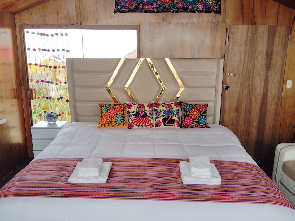 Vive una experiencia única en una isla flotante sobre el Lago Titicaca. Disfruta de amaneceres dorados, cielos infinitos y noches de calma total. Ofrecemos desayuno incluido, traslado en bote y tours opcionales: kayak, Isla Taquile y recorrido por la comunidad Uro. Dos habitaciones con vista al sol: una al amanecer y otra al atardecer. Descansa sobre el agua, en paz con el lago.