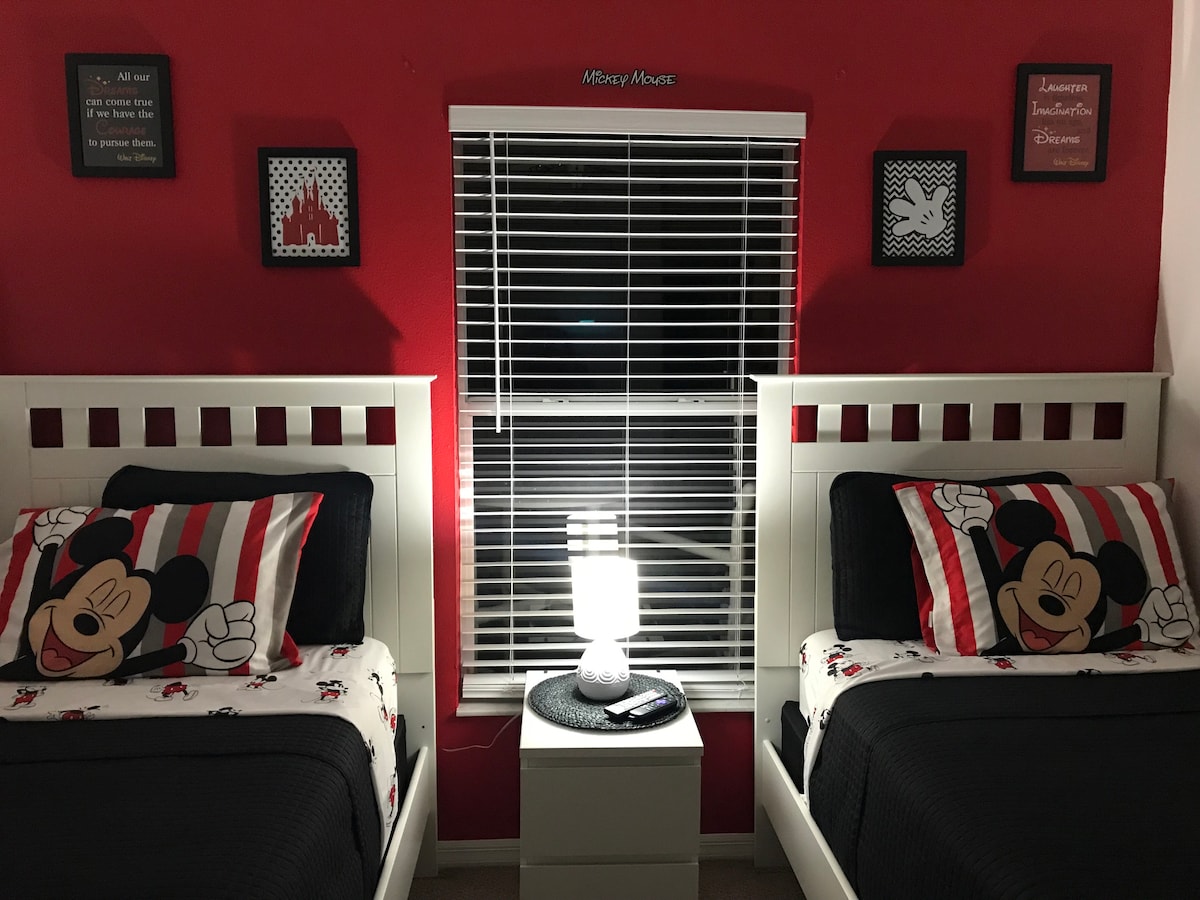 ❤ Illusion room with character outfits ❤ Private pool with water view ❤ 15 min to Disney ❤ 25 min to Universal, SeaWorld, Convention Center, 2 min to Walmart ❤ Game room with board games & kids toys ❤ 100" movie theater screen ❤ Free Netflix ❤ Fully equipped kitchen ❤ Sleeps 12 ppl ❤ 2 king beds, 2 cribs, 1 Queen memory foam sofa bed, 6 twins ❤ Newly renovated home ❤ Fully stocked home ❤ Alice in Wonderland®-themed home ‼️ No parties, No smoking, 4 dogs max $75/pet