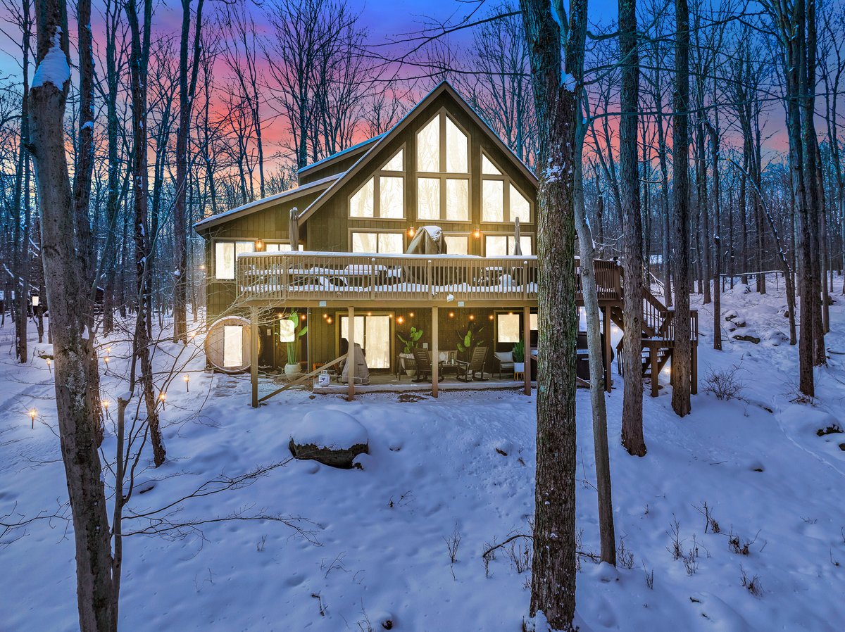New 7 SEAT HOT TUB! In the heart of Pocono Mountains a newly renovated, modern, spacious & family-friendly chalet in an amenity filled community Private 3000sqft 4bed3bath home located on 1.5acres backing up to a nature preserve Enjoy the sauna, hot tub, game room, fireplace, fire pit We are in a community with 5lakes, 3beaches, fishing lake, 2pools, playgrounds, tennis & basketball courts Minutes from bird watching, hiking, wineries, skiing, indoor water parks, golfing & casinos