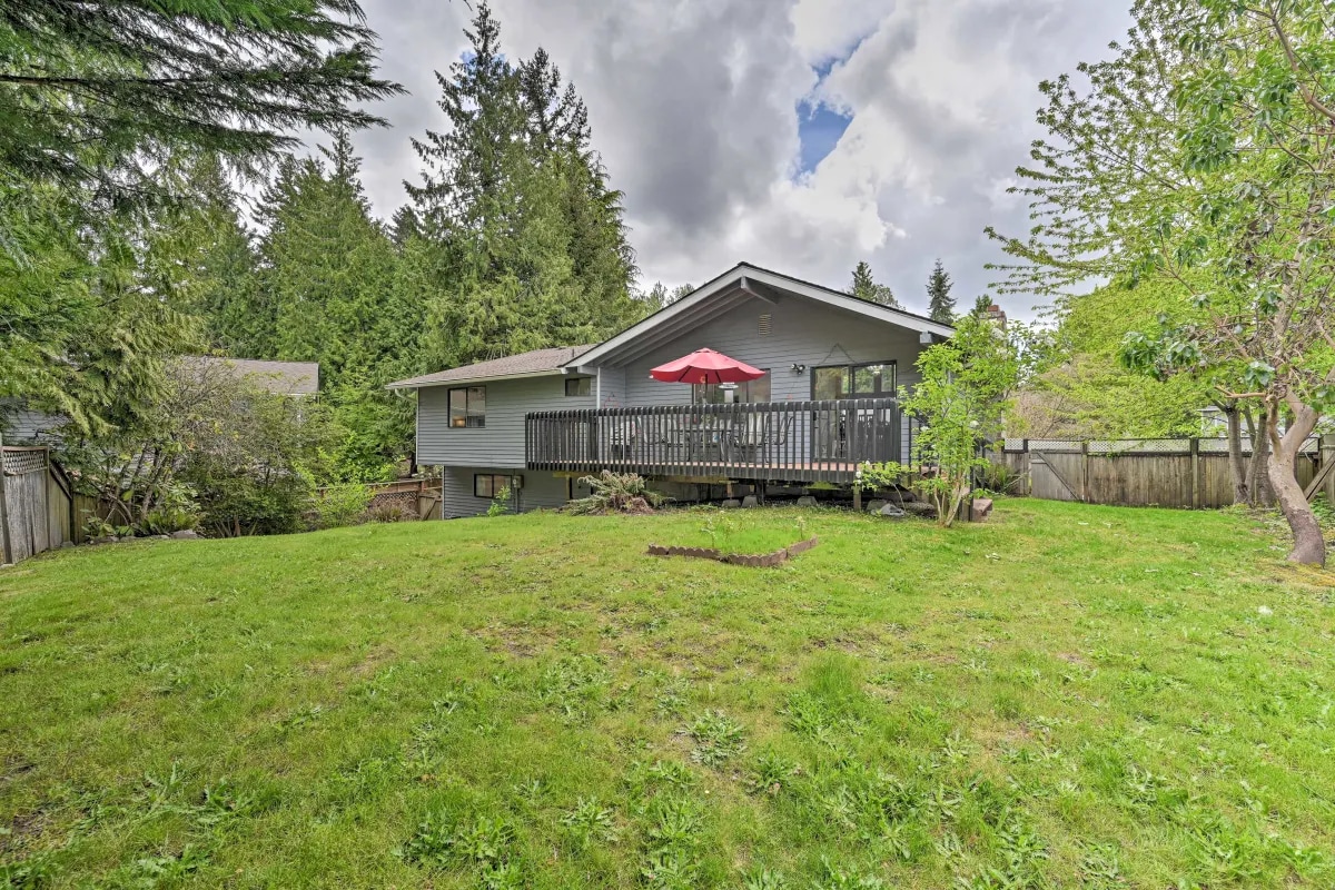 华盛顿湖景房源,带热水浴缸、烧烤架和花园