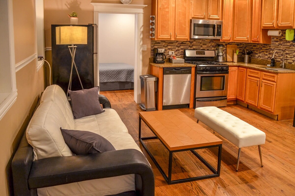 This newly remodeled 3-bedroom unit with 1-bath apartment is perfect for both leisure & business travelers. Located on a safe, tree-lined street, in the Lakeview neighborhood, with a completely private entrance of it's own. We are just a 5 minute walk away from the CTA Irving Park Brown Line, which will get you downtown in less than 20min. We are also conveniently close to Wrigley Field, Lake Michigan, Bus Stops, and other great neighborhood shops, restaurants, and nightlife.