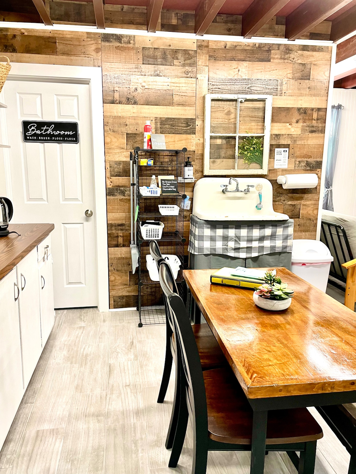 Take it easy at this unique and tranquil getaway. Just minutes away from all the Waco area attractions, at Woodway, Texas. Newly upgraded shower and floors. Featuring an open space with a queen size bed, a full size futon, and a cute nook with a twin bed. Kitchen includes a microwave, toaster oven, two cooktop burners, and instant pot. A full size refrigerator/freezer completes this home-away-from-home space. Amenities include free Internet access/WiFi, an outdoor grill and a picnic table.