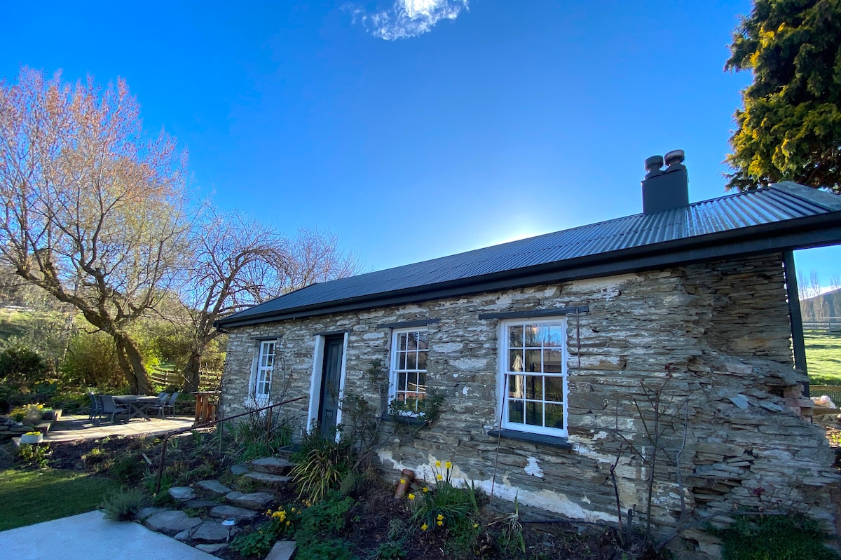 Original Historic Goldminers Stone Cottage located on the Gibbston River, bike and walking trail with easy access to local wineries. Featured in the latest edition of the NZ Lonely Planet guide - This award winning beautifully restored original Goldminers cottage dates back to 1874. Set in the heart of Gibbston Valley with 360 degree views of the Nevis Bluff, Mt Rosa and Waitiri station the cottage provides a peaceful and relaxing base to explore the surrounding area. The cottage interior is an open plan studio layout with a cosy sitting area at one end with a partly screened bedrrom area at the other end, with an adjacent separate bathroom. The bathroom is spacious with separate shower and bath. The bedroom area features a queen bed and you walk through to the lounge, dining and kitchenette area. The kitchen features a stove top and microwave combo oven. Fridge, kettle and toaster. The cottage is great for 2 guests, but can sleep 2 additional guests on the sofa bed in the sitting area, as this converts to a double bed and full linen is supplied. Cuddle up in front of the warm cosy fire, relax and unwind. Walking distance to 3 local wineries and walking trails to Nevis Bluff, Mt Rosa and Coal Pit Road. Situated directly on the new Gibbston River Trail you can bike to the Gibbston Tavern, Peregrine Winery, Gibbston Valley winery and AJ Hacket Bungy bridge. Then continue directly onto the Queenstown Trails to Arrowtown and Queenstown from the door. Easy access to the Gibbston Valley station new Rabbit Ridge bike trails recently opened. Gibbston is 10 minutes drive to Arrowtown and 20 minutes to Queenstown Airport. Cromwell and Bannockburn are 20mins drive. Wanaka is 40mins either via the Crown Range or by going through Cromwell. The cottage is easy access to all activities in and around Queenstown and very handy to the many ski fields in both Queenstown and Wanaka in the winter. Set in its own garden on our 6 acre property where we built a Strawbale house you are welcome to visit the horses, collect eggs from our chickens and pat our sheep. Help yourself to our seasonal produce from the garden. Bikes are available for use to explore the trails Firewood is supplied Outdoor furniture and a BBQ are provided for outdoor living *Linen supplied and included with rental. *Visitors to clean-up and leave the property as found.