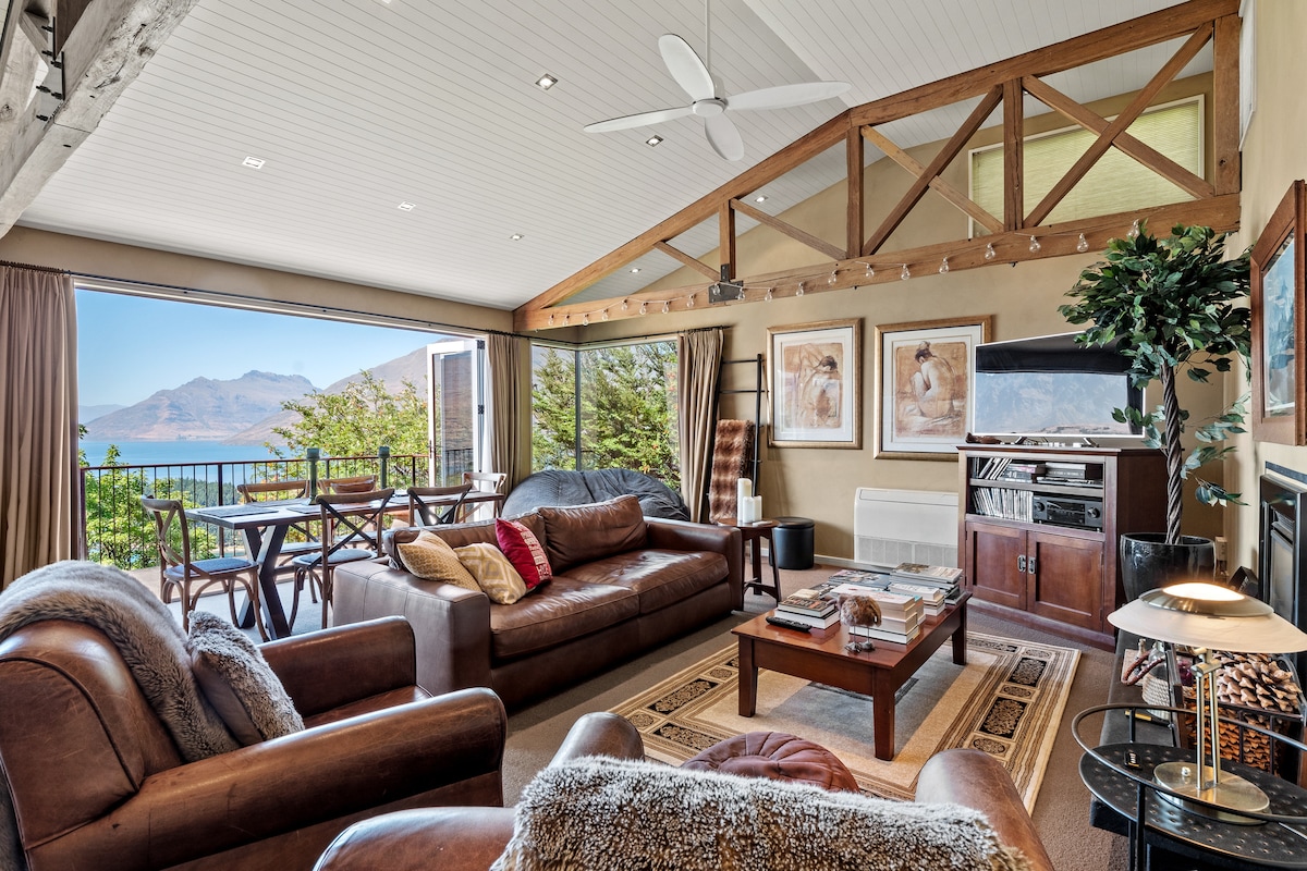 This newly refurbished home, just a short walk into the centre of Queenstown, provides the perfect spot to be close to all the action this vibrant town has to offer. Ruru Retreat has two seperate living areas. The main open plan living and dining space is lake facing with large windows maximising the panoramic views of Lake Wakatipu and the Remarkables Mountain Range. With a log fireplace it provides the ideal ambience to cozy up to in winter after a day spent skiing on the nearby fields.