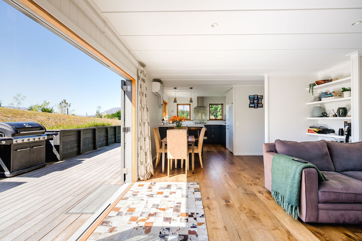Modern 2BR Queenstown Hill Villa – Walk to Town Make the most of Queenstown’s summer adventure scene from this stylish 2-bed, 2-bath villa less than 10 minutes’ walk to the lakefront and nightlife. Enjoy open-plan living with air-conditioning and free parking. Perfect base for friends to explore bike trails, lake adventures, wine tours, golf and Queenstown’s vibrant dining.