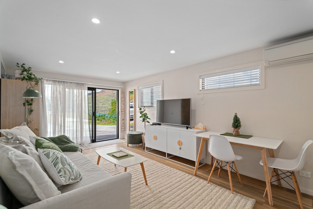 Self-contained well appointed Studio apartment located in convenient Frankton. Walking distance to shops, restaurants, bus stop, lake & river and the airport. Full kitchen - fridge, oven, microwave, dishwasher. Bathroom with a shower and combination Washer/Dryer. Ventilation system and underfloor heating for full comfort. Private outdoor seating area. Wifi and TV. Bed is set up as a super king but can be separated to accommodate 2 single beds on request. Keyless electronic entry.