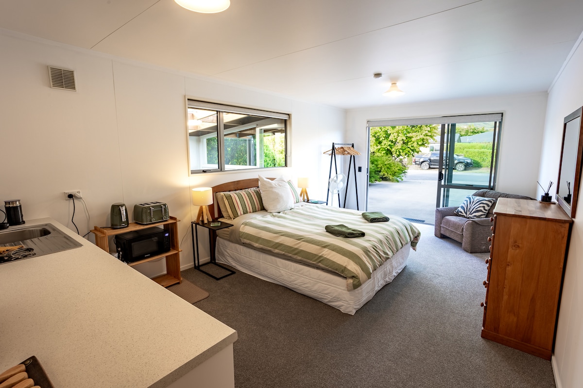Fern Cottage is a modern one-bedroom retreat in quiet Fernhill, just minutes from central Queenstown. Features include a cozy open-plan living area, compact kitchenette, private balcony with seating, and secure storage for skis, snowboards, or bikes. Fast Wi-Fi, workspace, heating, and parking included. Easily reached by bus from the airport. Ideal for couples, solo travellers or business guests looking for comfort, convenience, and style in a peaceful location.