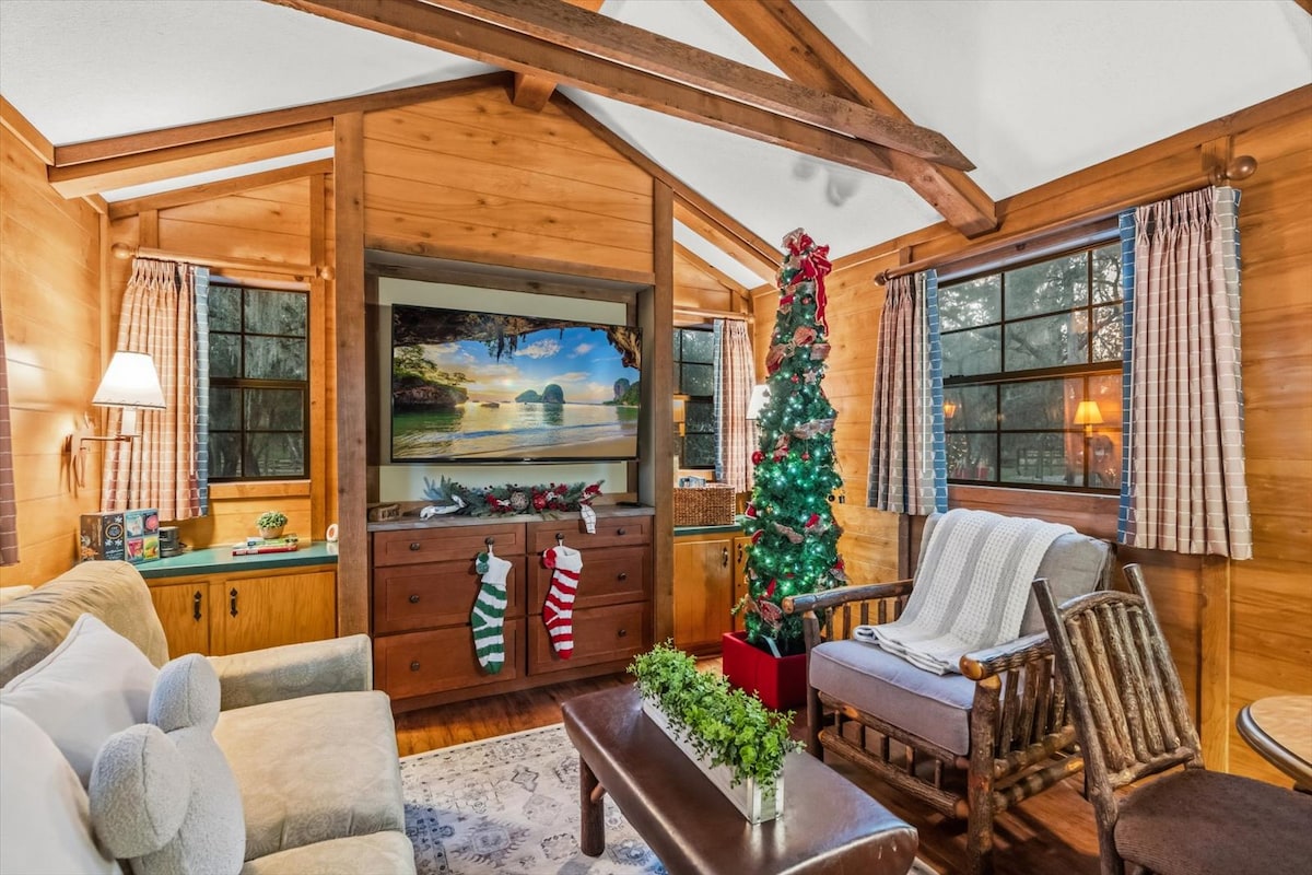 Escape to our peaceful, gated retreat just 20 minutes from the theme parks. Nestled in nature, this unique retreat features three vintage cabins originally used by Disney, offering a magical and cozy stay. Enjoy the outdoor pavilion with yard games, picnic tables, a fire pit, an outdoor pool and a barbecue grill—perfect for relaxing after a day of adventure. Whether you're a Disney fan, a tourist, or a local seeking a getaway, this one-of-a-kind experience is waiting for you!