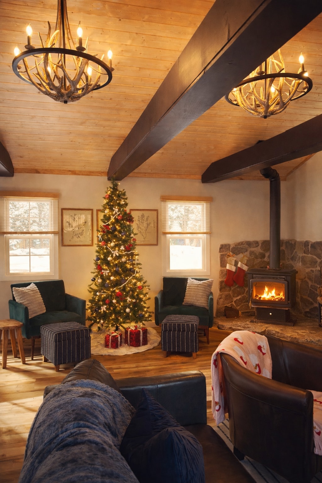 Deep within our psyche lies a romantic image, that of a log cabin tucked into the woods perched above a babbling trout laden stream. Perhaps inside there's a sheepskin rug laid before a grand fireplace, a reading nook, and a child's dreamy hideaway loft. Or maybe you're out on the deck, a crisp morning bundled and sipping cocoa on a rocking chair, or nights soaking sore bones and soaking up the sounds of the stream & kids below roasting smores by the fire. Now make that dream a reality!
