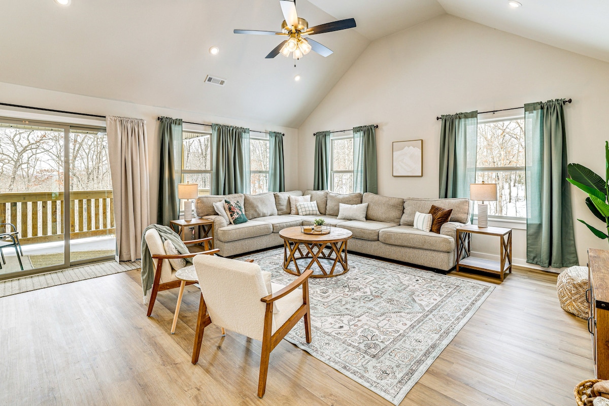 This fully stocked home welcomes you into the beautiful wooded views for ultimate peace and relaxation. There is a surprise waiting for you in every corner, from the modern yet rustic décor to the amazing deck which nestles beautifully into the trees just like a tree house. If you're feeling adventurous, a private yet steep trail will lead you to your own private dock where you can enjoy amazing views of a calm and quiet lake which you will almost always have to yourself.