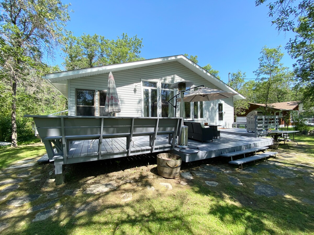 Welcome to our cozy all-season cottage in Winnipeg Beach - just one block from the beach and marina. Enjoy the lakeside community while staying at our stylishly-finished three bedroom, one bathroom retreat, featuring a wood-burning stove, streaming-only smart TV, in-ceiling speakers, high-speed Internet, fully-stocked kitchen, and a full bathroom with heated tile floors, large walk-in shower, and washer and dryer. The backyard has a gazebo with sectional and the front has a large deck with BBQ.
