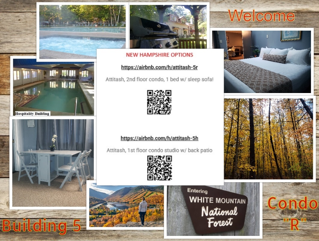 KimBills' is a newly renovated, cozy, first floor condo located at Attitash Mtn. Village, just minutes from the Saco River. Full kitchen well stocked with necessities, gas fireplace, A/C, Murphy bed and pull-out sofa bed with new, comfortable mattresses. Cable/internet, 55" TV, & board games. Large deck with lighting. Guests enjoy full use of all Attitash Mtn. Village amenities including river access, pools, sauna, hot tubs, tennis & basketball. Close to shopping and area attractions.