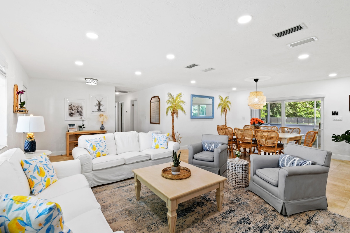 Cheerful home w/pool & 4-min walk to beach