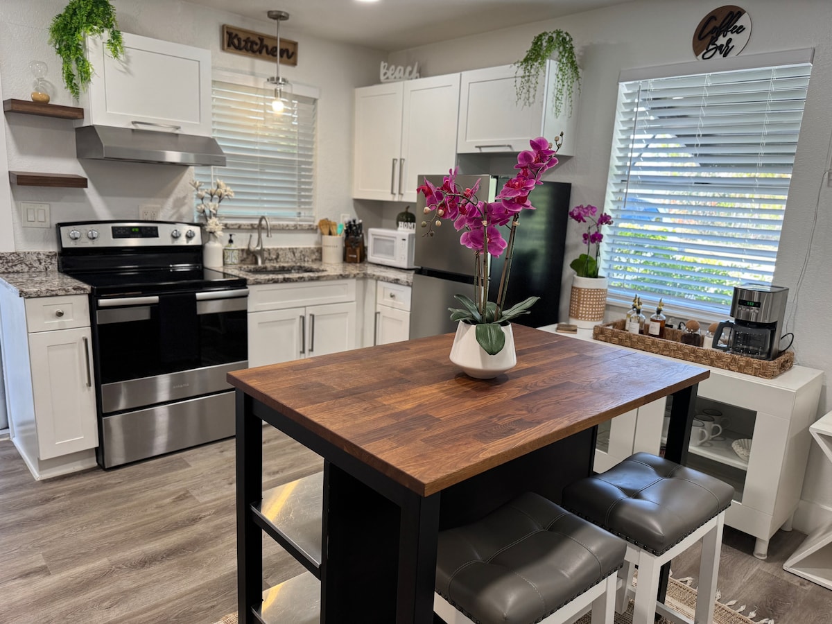 This unique 2nd floor 2000 square foot home is located 10 minutes from multiple beaches. The stairs lead you to a beautifully spacious open kitchen and living room concept for everyone to enjoy. Inside offers multiple options in case of a rainy day such as a poker table, bumper pool, video games and smart TVs in every room. Outside includes full access to a fully fenced in side and backyard area where you’ll find a hot tub, pool table, ping pong, cornhole, a grilling area and a bar.