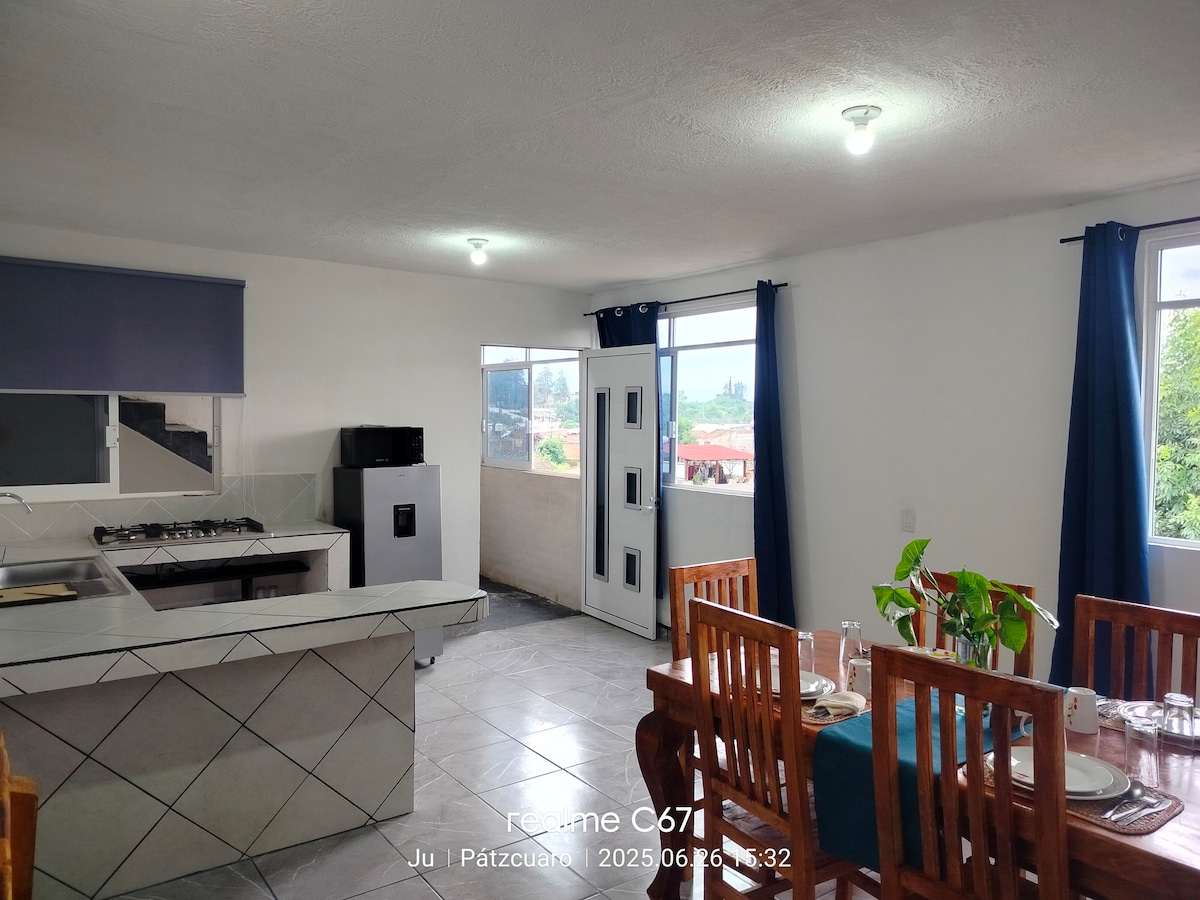 Bienvenidos a Mi Casita en Pátzcuaro, diseñada para quienes buscan comodidad, tranquilidad y detalles de encanto. Ideal para parejas o viajeros solos que desean descansar en un espacio privado, cálido y lleno de luz cerca del muelle. Está en un segundo piso, arriba de una casa familiar. La propiedad se comparte, pero tu espacio es completamente privado. Zona tranquila, cerca del lago. Ideal para caminar, pasear, disfrutar del entorno natural. El centro está a pocos minutos en coche