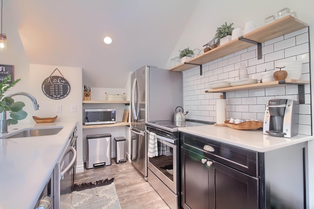 **Top location in Denver**, our 600+ sf second-story carriage house offers a serene escape amidst North Denver treetops. One block from the vibrant Tennyson Street business district, this charming guesthouse places you within walking distance of Denver's best restaurants, bakeries, boutiques, breweries, parks & grocery stores. Our newly built, quality-prioritized guesthouse is an oasis equipped with everything you need, just 10 minutes from downtown Denver and with easy access to I-70.