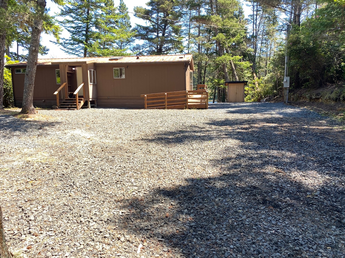 Direct dune access!! Coastal adventure meets quiet retreat! This hidden gem of a home sleeps 4 and offers direct dune access, a short walk to Tenmile Lake, and quick drives to beaches and trails. Ride your ATVs, fish for bass, hike the coast, or simply relax by the pond with the ducks and a good book. Bring your ATVs, fishing boat, hiking boots, or stack of books and enjoy this peaceful spot to unwind after the day’s fun. Perfect for couples or small families seeking the best of both worlds.