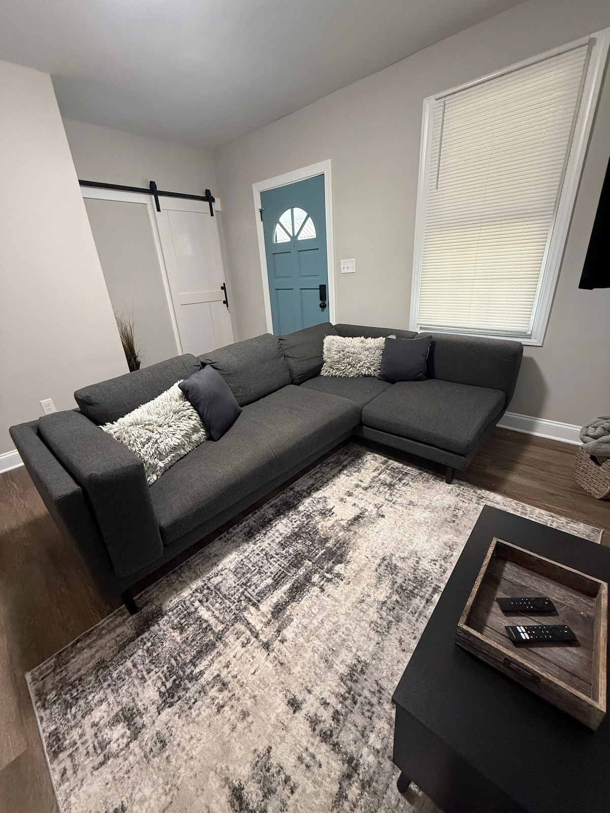 Spacious and restful one bedroom apartment close to everything in Richmond! With 10-foot ceilings and an open floor plan this first floor apartment is comfortable and spacious. It is located on the first floor of a duplex with a shady backyard and composite deck. Everything is newly renovated including a full kitchen, bathroom with a beautiful walk in shower and central AC and heating system. We love hosting your furry friends as well, and the backyard is perfect for dogs to run around.