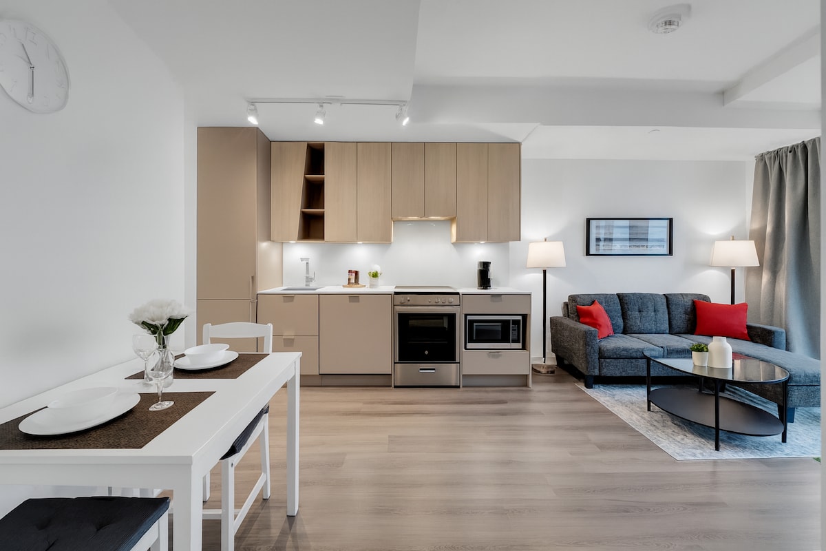 Stylish and central 1 Bed condo in Downtown Mississauga, steps to Square One, Celebration Square, Sheridan College, and transit. This modern unit features a bright open layout, full kitchen, fast Wi-Fi, smart TV, in-suite laundry, private balcony, and free parking. Walk to top restaurants, shops, events, and entertainment. Perfect for business travel, weekend getaways, shopping trips, and long stays.
