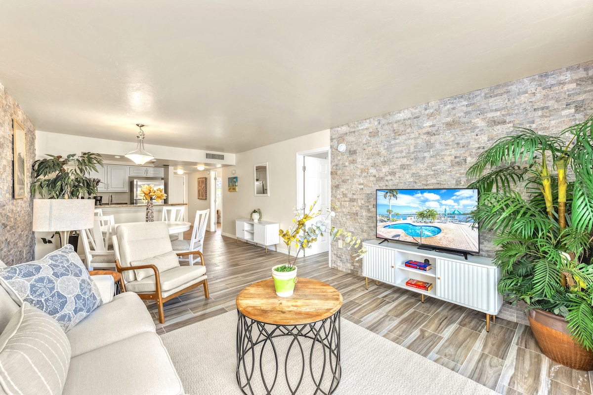 Located within the Ramada by Wyndham on Tamiami Trl Rt.41. This second floor unit within building C is conveniently located in the center of the resort and a short distance to everything, including The Tarpon Bay Bar and Grill! All new furnishings include 1 King adjustable bed, an electric reclining loveseat, 65” LG smart TV, and a bar for two. Guest’s will have access to the hotel’s incredible heated pool, exercise room, lobby business center, laundry room, and beautiful ever changing sunsets