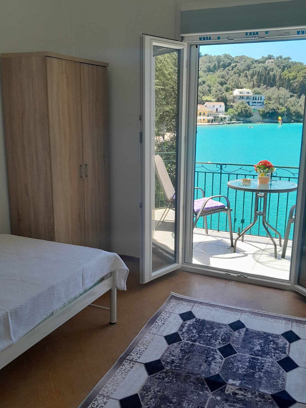 The studio is located in the village of Lakka in the northern part of Paxos Island. Lakka is a small picturesque port 2 mins away. There are also two wonderful beaches about 5 mins on foot. In 2-3 mins on foot you can find taverns, cafes, tourist shops, super / mini market, ATM etc. Guests will need to climb about 25 steps to reach the apartment. For this reason it is not recommended for people with mobility issues.