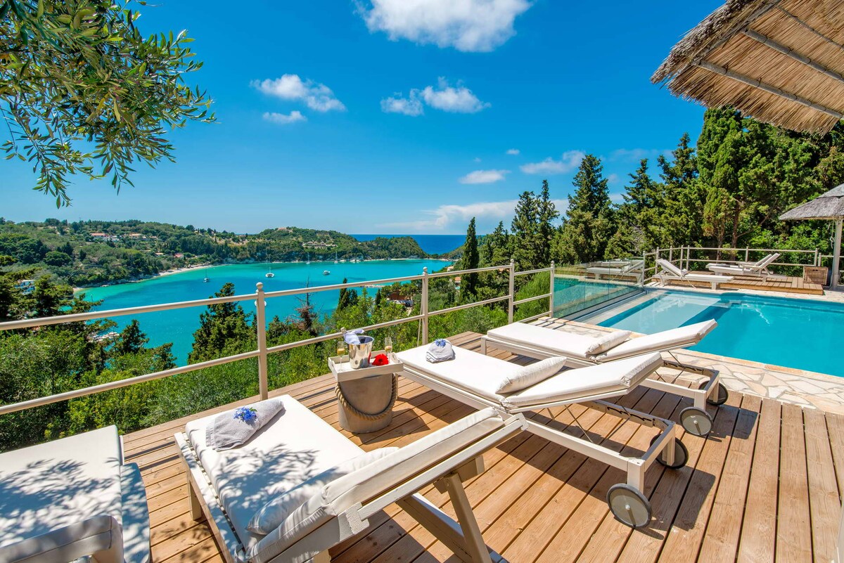 Villa Christina is a traditional villa with thick stone walls situated in an idyllic area, surrounded by olive groves and about 5 minutes away on foot from the quaint Lakka village or Harami and Kanoni beach.