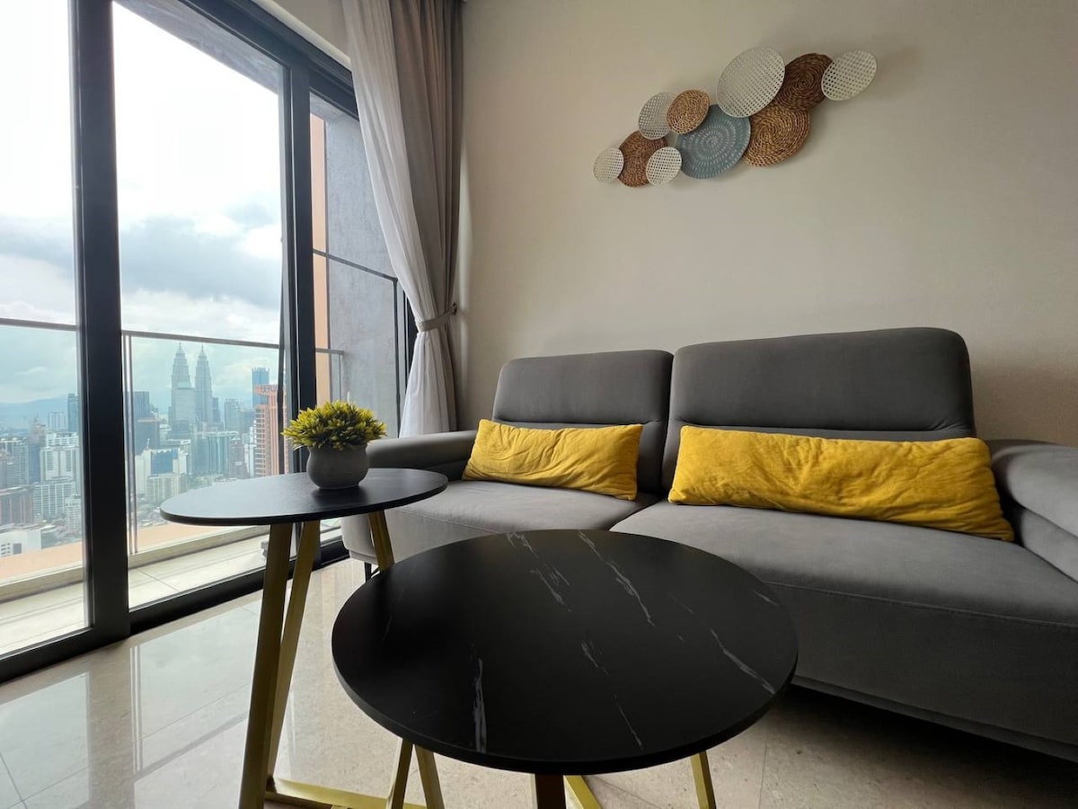 •1 Bedroom suite is located within the KL Golden Triangle! .KLCC & KL Tower view •Centrally located at 5-10mins to: •Berjaya Time Square . Lalaport •Changkat Bukit Bintang bar street •Jalan Alor famous local food •China Town •Pavillion •Monorail & LRT (Hang Tuah Station) •KL bus terminal (Pudu Sentral) •10 mins drive to KLCC & KL Tower Our place is very suitable for families, couple or a group of friends or business travellers as we have a specific workspace