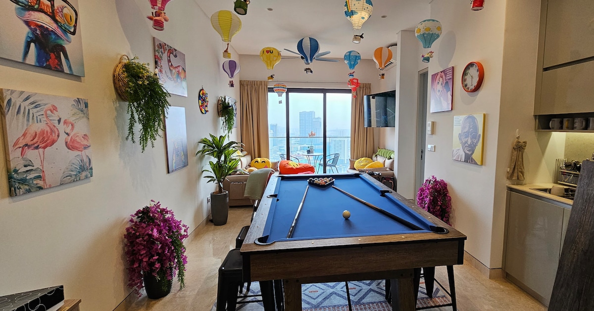 Why stay at Contemporary Suite at Lucentia Residence - the best views of KL - beautifully decorated with a fun spirit - centrally located - near public trans - fast wifi - 2 TVs with Netflix, Apple TV, Prime Video - 2 gorgeous pools - family friendly with baby crib & high chair - gym, pool table,BBQ pits, piano - garage parking - sleeps 3 max 5 - LalaPort Shopping Mall & the WOW entertainment street are attached - grocery, drug store, and many restaurants are attached - movie theatre GSC