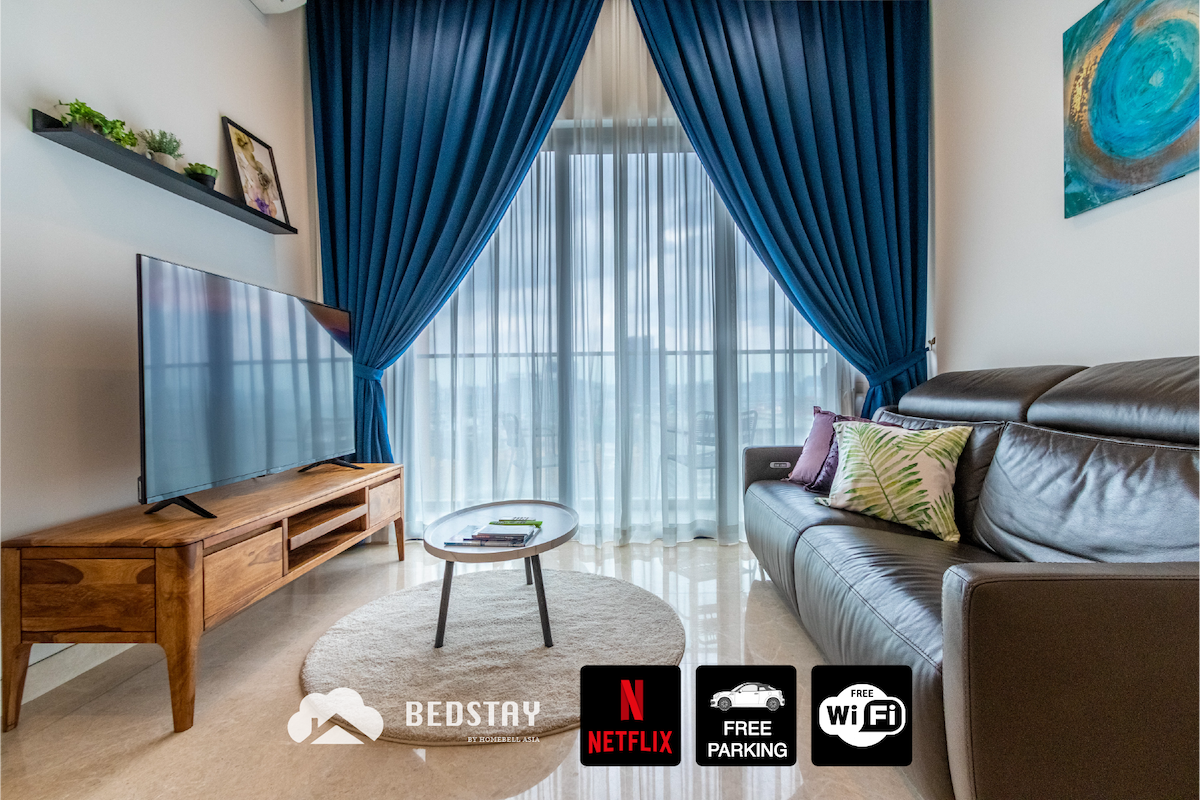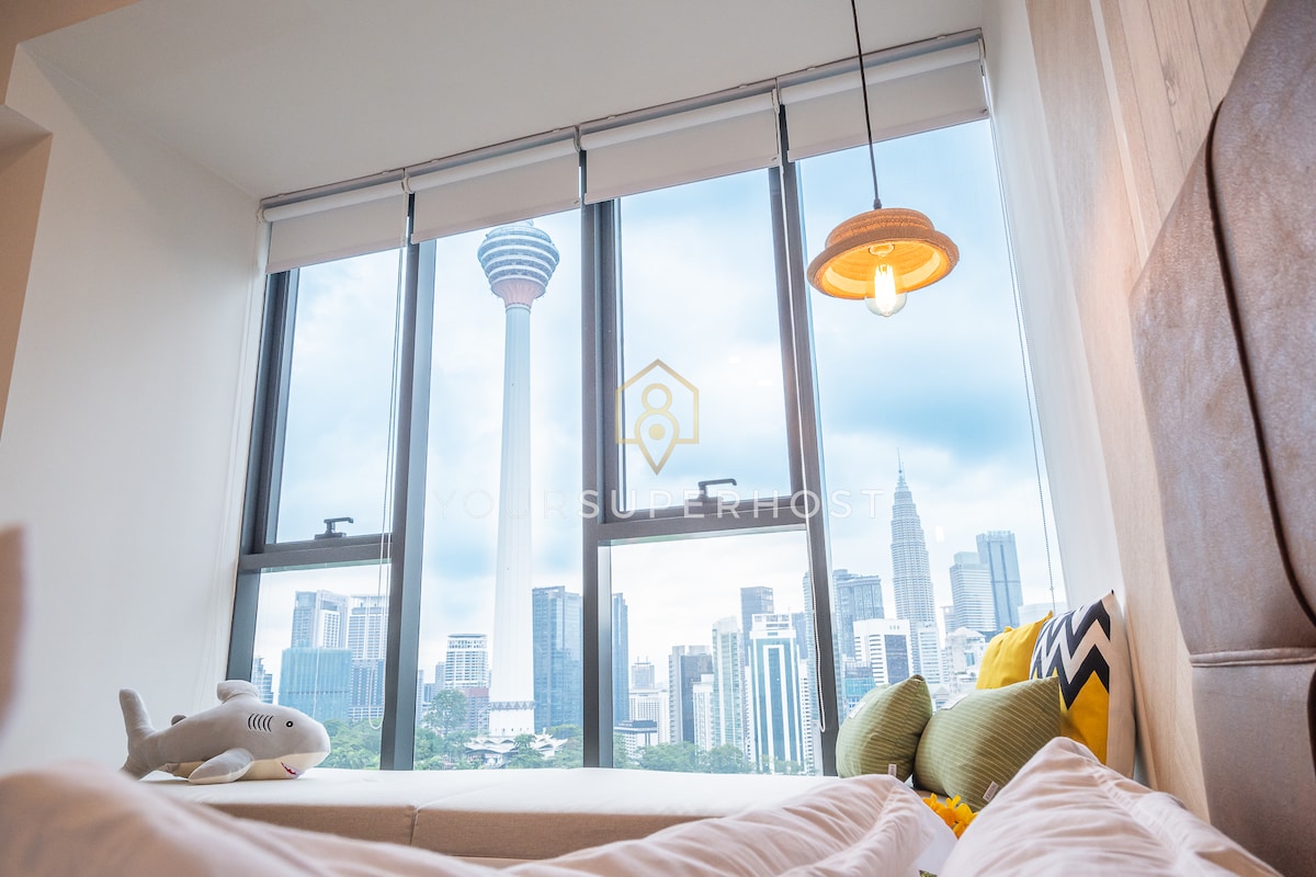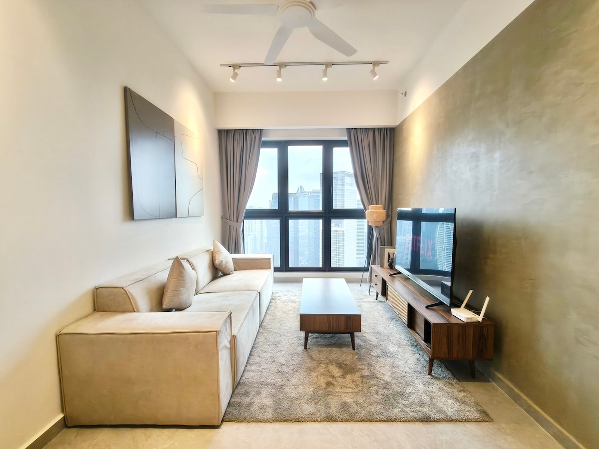 This 1 Br apartment comes with a breathtaking view of KL skyline. It has a 3-seaters sofa living room, dining table, kitchen, desk and a big balcony facing the KL Tower & Petronas Twin Towers. It comes with a 55” TV, Hi-Speed WIFI and a Queen size bed that can fit you comfortably. *The other unit of this Dual Key apartment is a compact Studio with Queen size bed, pantry, washroom & bath. It can fit in friends who travel with you with privacy. Welcome to ask for more details!