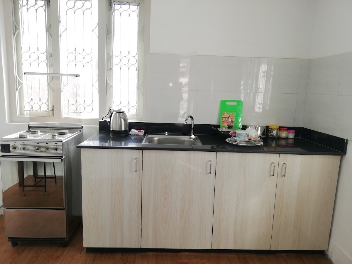 A stunning view of the mountains, Patan Durbar Square, and numerous temples surrounding the home can be seen from the room. Ideal for a couple/single person seeking a short to longer stay, it features a plush queen bed, a fully equipped kitchen, and cozy dining area, dedicated bathroom with 24 hours hot water supply. Toiletries including towels, shampoo, and body wash are provided, in addition to basic conveniences like an electric kettle, hair dryer, tea or coffee, and a microwave oven.