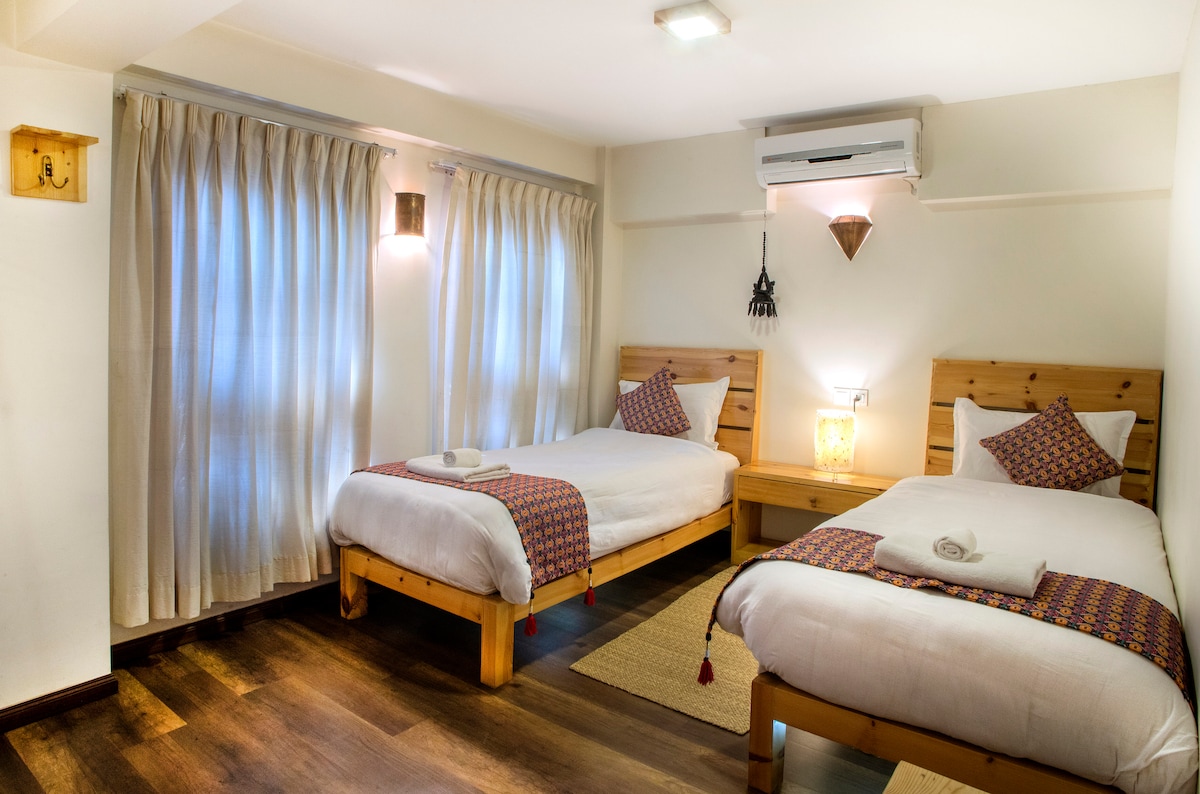 Timila's twin bedroom is equipped with of 2 single bed, a desk space and an attached bathroom. With hot water, convertible AC and free wifi, it is the perfect place for friends or family willing to explore our heritage neighbourhood in a comfortable environment. It has direct access on common rooftop & green garden. Welcome!