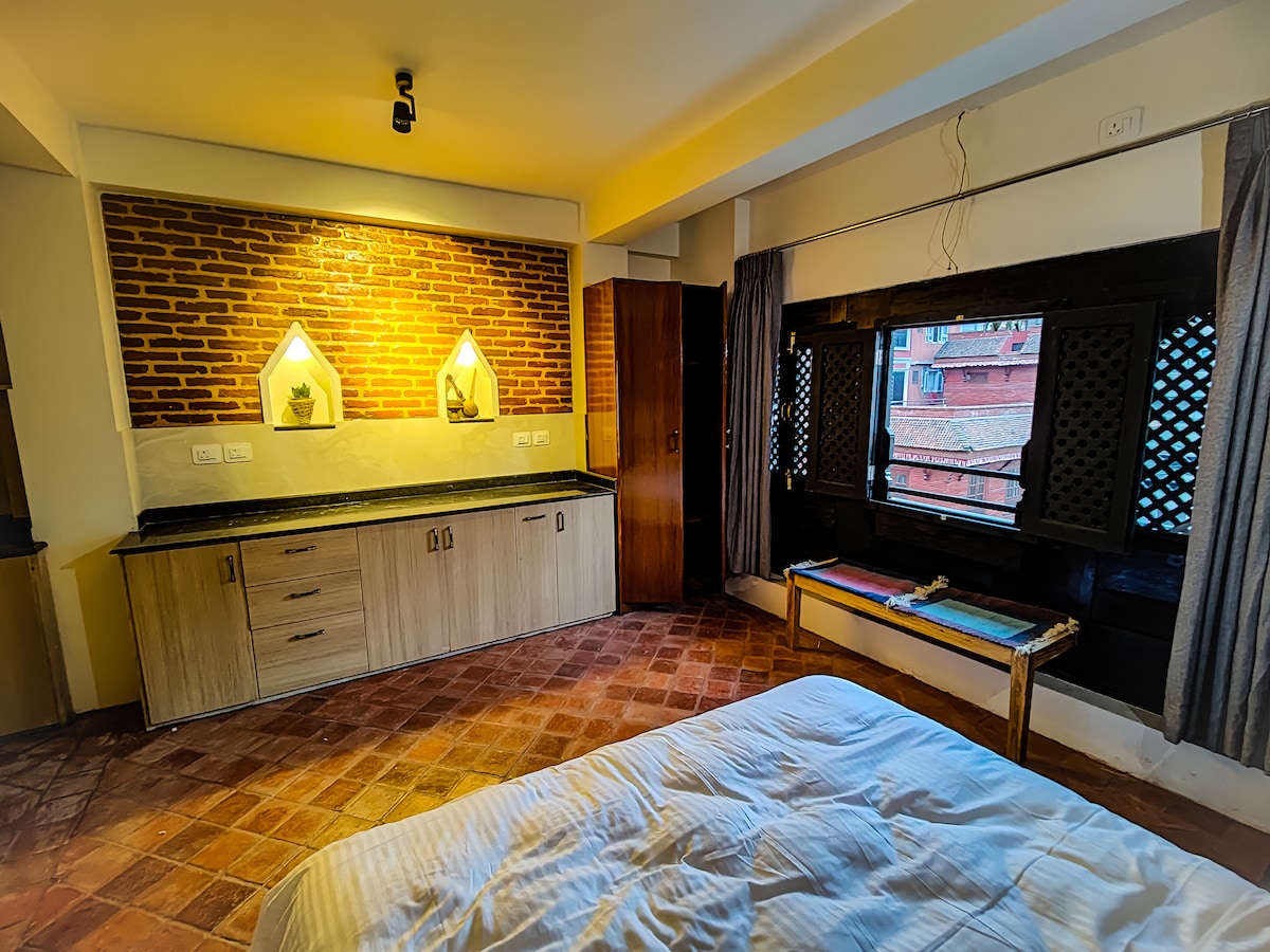It is located at center of bhaktapur durbar square with authentic flavors of the building with traditional style .50 meters away from main square, city with culturally rich located at heritage site made in 17 th century..places,monument ,devotes of god …friendly people with full of helpful hearted…