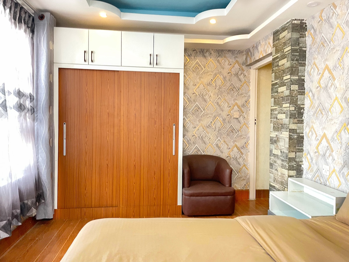 This spacious 3 BHK apartment in Imperial Court, Sanepa, features a contemporary design that blends modern elegance with a warm and inviting atmosphere. Nestled in a vibrant yet peaceful neighborhood, the apartment features top-notch amenities, including a flat-screen TV, AC, Wi-Fi, and a fully equipped kitchen, ensuring a comfortable living experience. The apartment’s sleek design and peaceful ambiance make it the ideal retreat for those seeking both luxury and practicality.