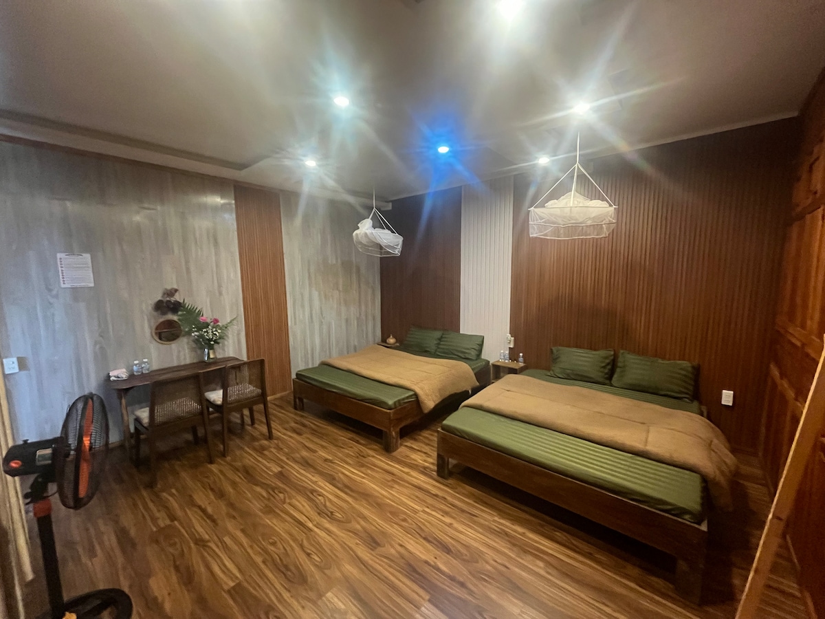Đây Là Căn Bungalow city view thuộc hệ thống phòng của Dốc Nhà Tây. Có 02 phòng ngủ nhỏ, 01 phòng khách, 01 toilet, 01 ban công. sức chưa từ 04 đến 06 khách. (thêm giuờng ở phòng khách và bỏ sofa ra)