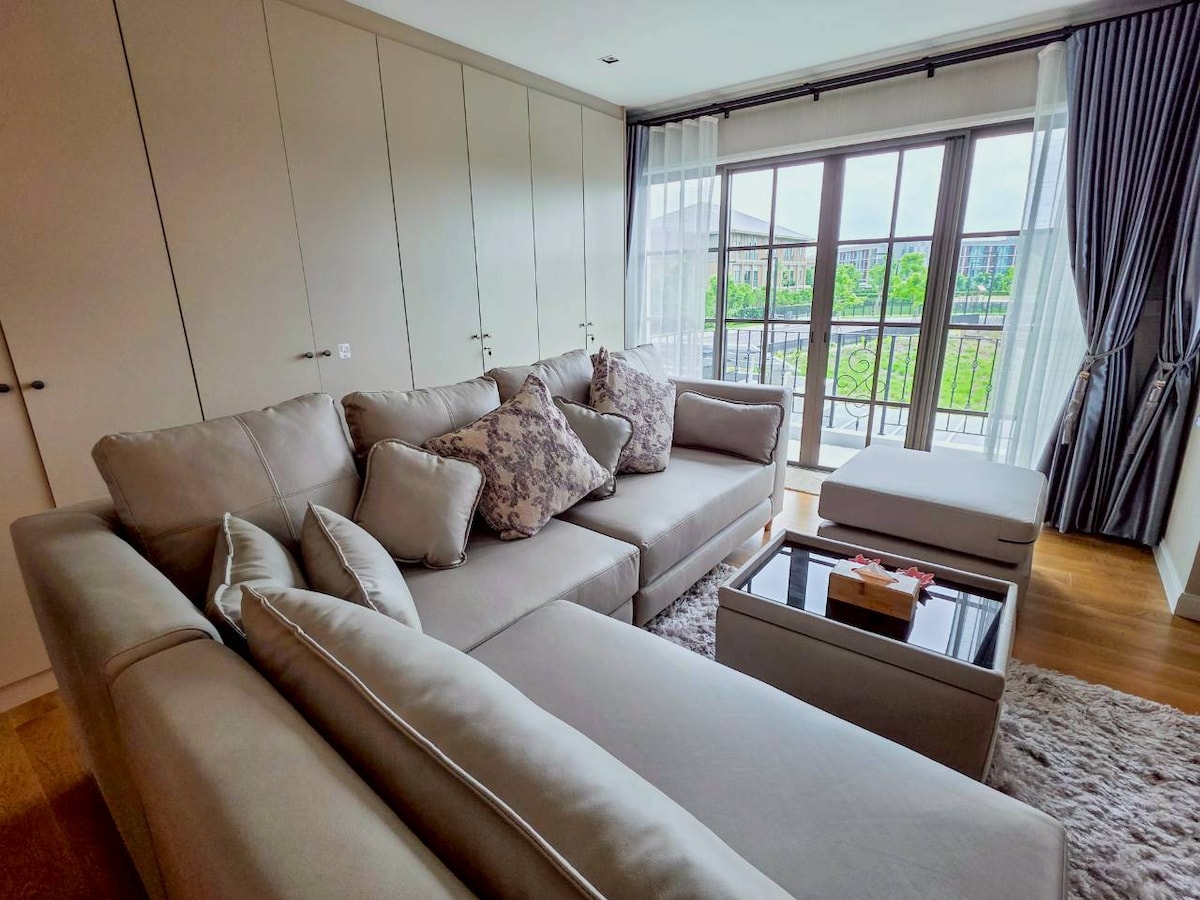 Welcome to Be Good@Rangsit The Space: Stylish & large (120 sq m/1,300 sq ft) space to stay. 2 Bed rooms with restful Queen-size bed and bunk bed. Fully furnished with all essential amenities, Filtered water(Cold/Hot), Air conditioning and Hi-speed Wi-Fi. Prime location: Located in Rangsit prime area. Close to Rangsit SRT station, just 2 stations to DMK airport. Near shopping mall Future Park, ZPell, Tesco Lotus & Big C. Surrounded by local food, also fresh market. 7-11 just at the corner.
