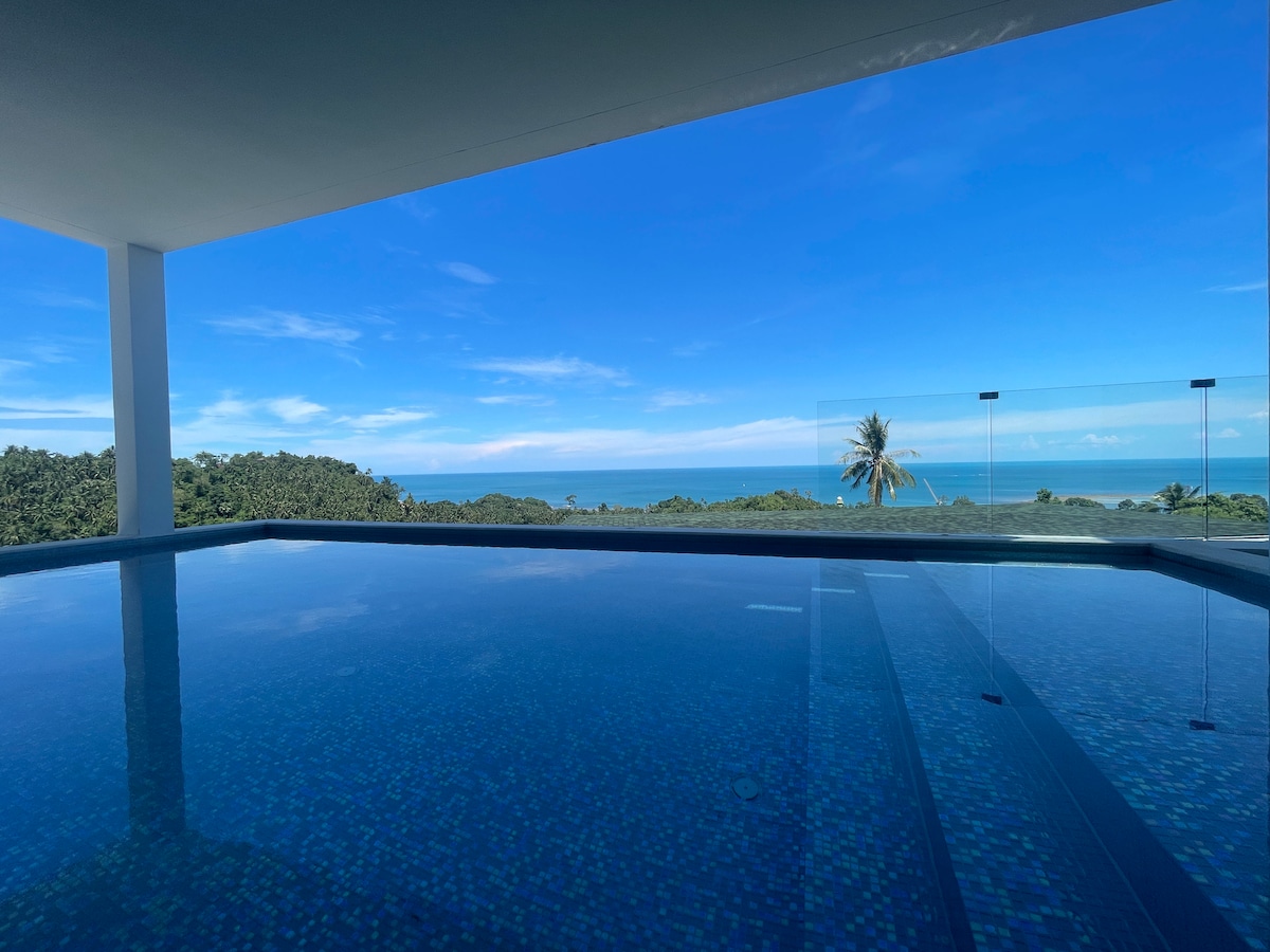 Luxury 2-bedroom, 2-bathroom 120 SQM penthouse apartment at the boutique Residence 8, featuring a spectacular private rooftop designed for outdoor living. Enjoy breathtaking panoramic sea views from your exclusive rooftop with 5 SQM private plunge pool, built-in BBQ, fridge, large outdoor dining area, sunbathing space, and a shaded sala with seating for up to 8 guests. Perfect for sunset evenings, entertaining, and relaxed island living in one of Koh Samui’s most desirable locations.