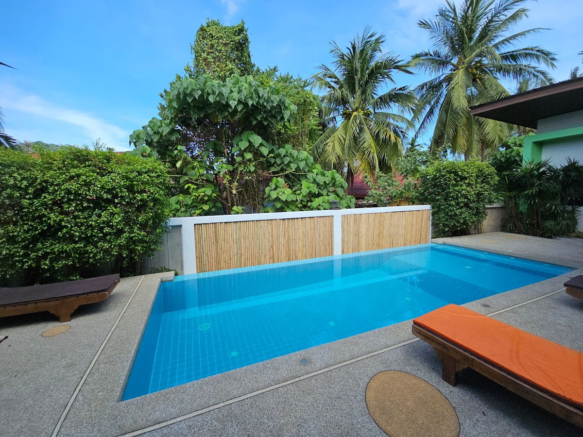 Tropical 2-bedroom villa in Laem Set, Koh Samui, just 5 minutes’ walk to the beach. The house is fully open-plan except for 2 air-conditioned bedrooms. Enjoy a private 9x3m pool, high-speed internet, washing machine, TV, and 2 outdoor showers. There are 2 toilets for convenience. Electricity (7 THB/kWh) and water (40 THB/m³) are charged separately. Perfect for couples or small families seeking comfort and tranquility near the sea.