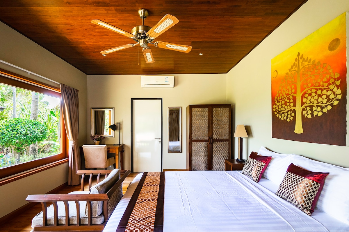 🏖️ Lychee Bungalow is your tropical escape, just 2 min from the beach 🌊. Wake up to the sound of waves, relax on your private terrace, and enjoy a comfy double bed, bathroom & A/C. 🍹 With a beachfront restaurant next door and island vibes all around, it’s the perfect hideaway for couples, friends, or solo travelers in Koh Samui.Not a luxury resort, but a cozy stay where you can truly experience the natural island life of Koh Samui.