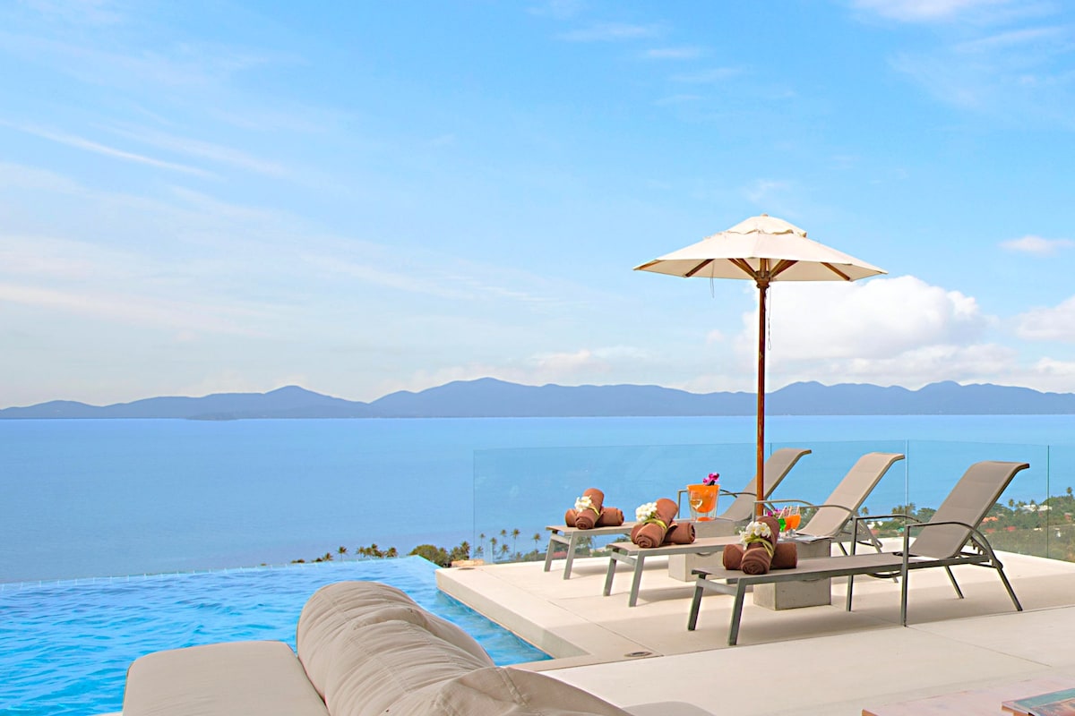 Indulge yourself at Villa Soong a private beachfront tropical oasis with a private infinity pool. This luxurious beachfront villa has 3 magnificent ensuite bedrooms sleeping up to 6 persons. Villa Soong sits directly on the beautiful, unspoilt white sands of Bang Por beach with its spectacular views of Koh Phangan. This is beachfront living at its best. Included in your rental is a housekeeper. So indulge yourself at one of Koh Samui's finest beachfront homes..