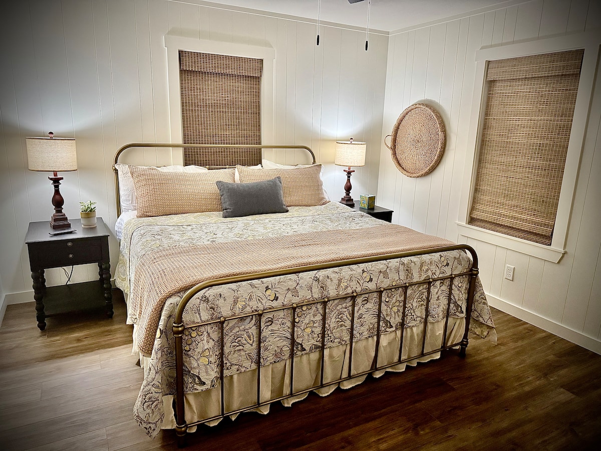 Step inside & be transformed. This swanky little number has an open concept floor plan that includes a Luxurious King bed & a Twin size rollaway bed. This stylish, yet intimate space, has many modern amenities making it ideal for short, mid or long term stays. Put a vinyl record on the player, kick back and relax. You can unwind on the front porch or enjoy the space in the courtyard where you can lounge under the covered patio by the fire pit and enjoy the outdoors. Just IMAGINE.