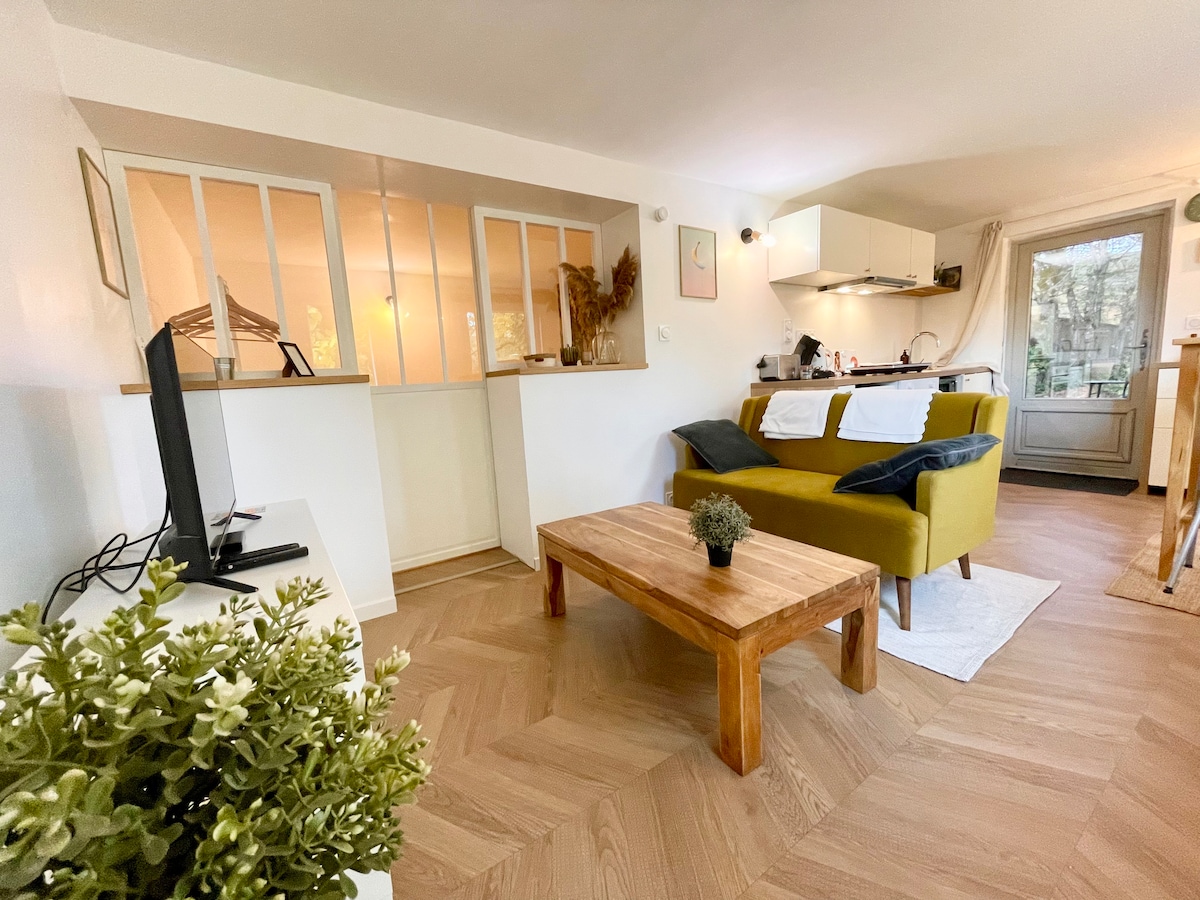 Votre logement de 34 mètres carré, plain pied vous sera privatisé au RDC, avec terrasse attenante. Lieu très calme et frais en été, au rez de chaussée. Espace nuit avec lit double, une belle salle de douche, une cuisine fonctionnelle et toute équipée et enfin un salon télé avec canapé lit. Sans oublier un espace extérieur privatisé. Connexion fibre optique en wifi.