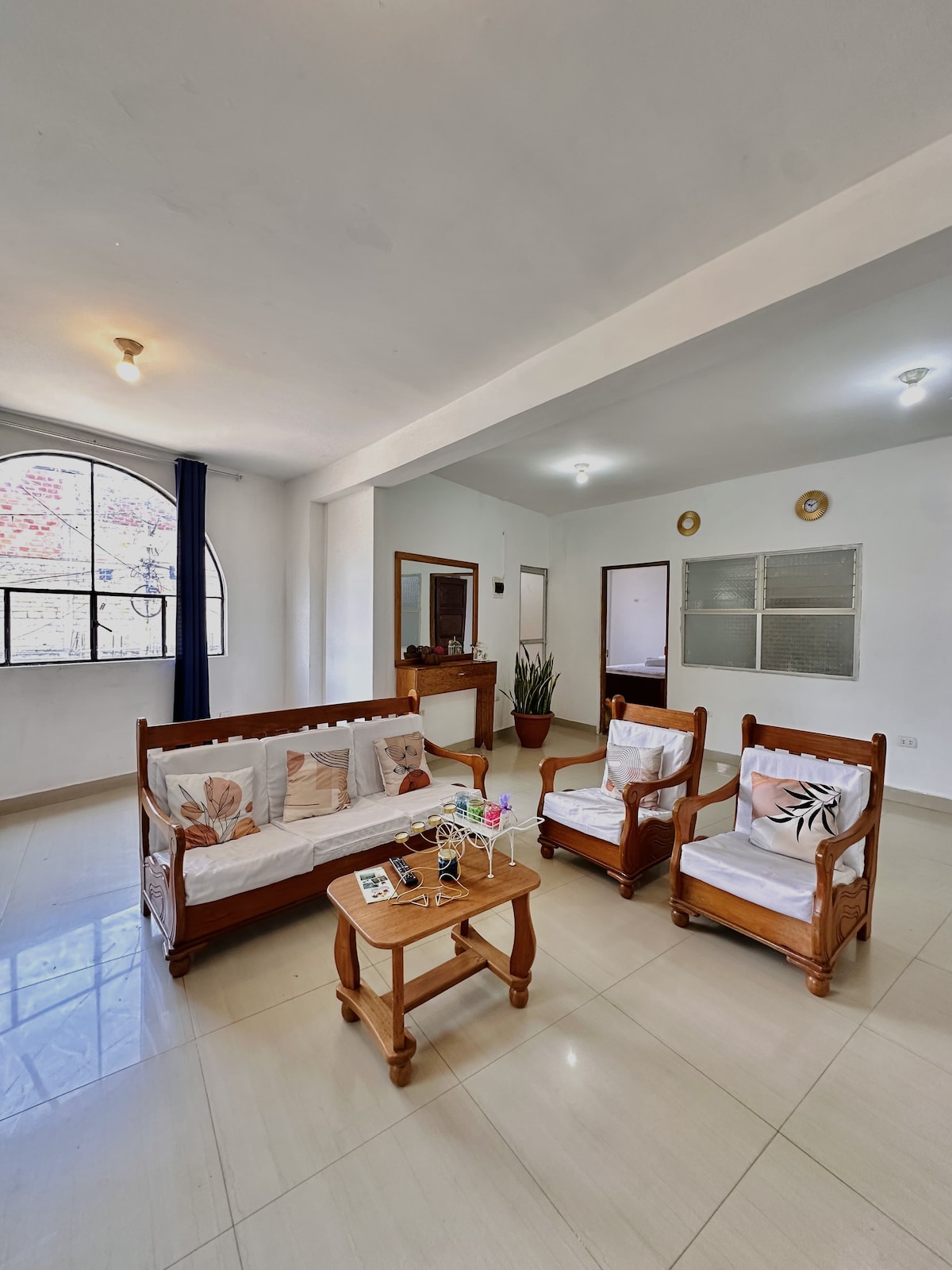 Tu familia y amigos estarán cerca de todo! A tan sólo 4 cuadras de la plaza de Tarapoto, y 2 cuadras de la "Calle de las Piedras". Sala espaciosa inclusive para realizar capacitaciones, comedor, cocina, lavandería, habitaciones y espacio de estudio o trabajo. Cada habitación cuenta con baño completo. Amplios, ventilados, iluminados y cómodos espacios, con vista panorámica hacia la cordillera Escalera, harán de tu estadía una experiencia inolvidable en la Ciudad de las Palmeras: Tarapoto-Perú!