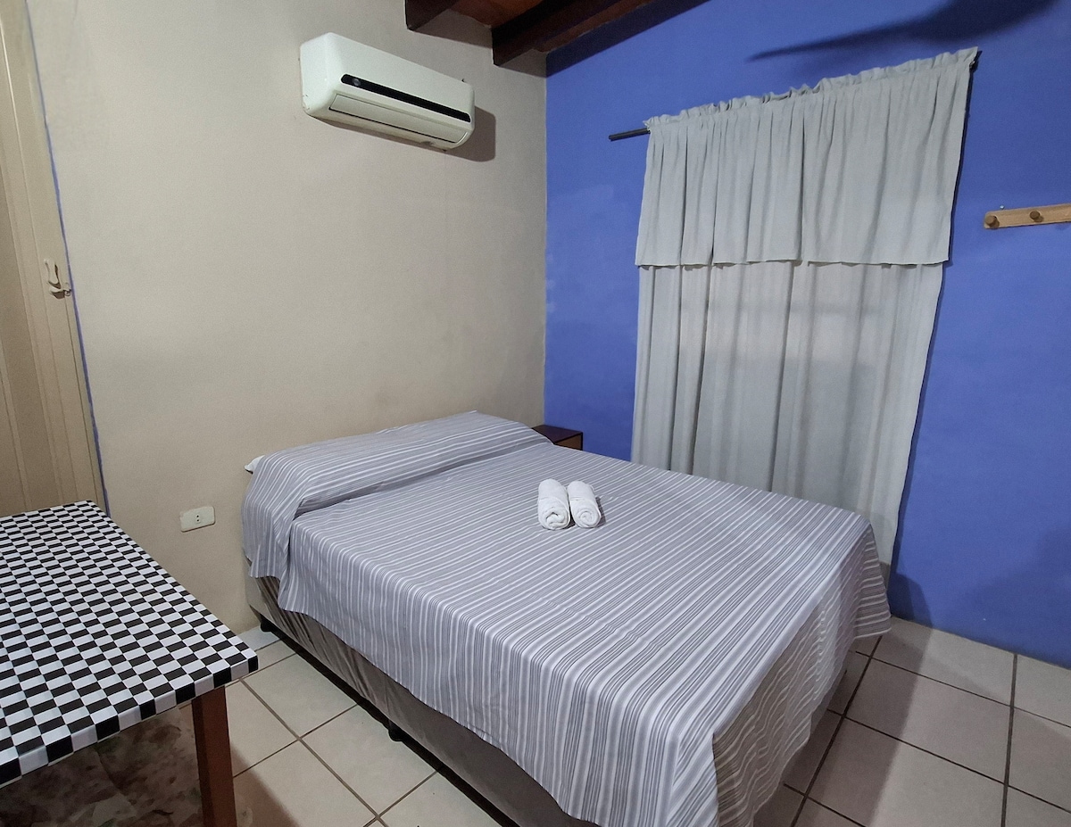 Espacioso y confortable ambiente único. 55 m2. 1º piso, sin ascensor. Wifi, AA, vajilla, ducha y pileta de cocina con agua caliente. Catre de campaña extra, de pago. Cuna adicional extra. Cochera techada. Terraza compartida con excelentes vistas al Río Paraguay. Bicicleta para movilidad cercana. Tiendas en las cercanías. Pet fríendly. Próximo a una importante vía de acceso a la ciudad. Parada de buses a 100 m A 700 m N. Olla Desconéctate de tus preocupaciones en este espacio tan amplio y sereno.