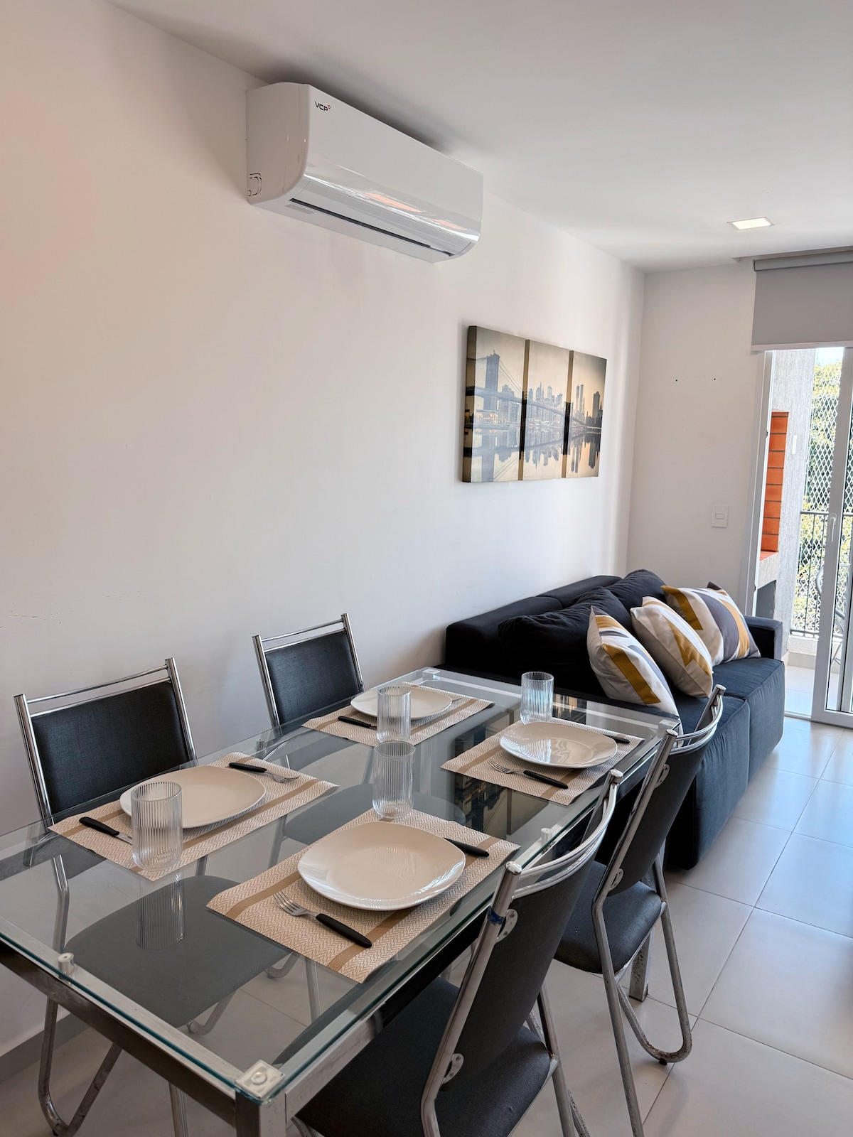 Departamento con 2 dormitorios y 2 baños completos, ideal para 4 huéspedes. Aire acondicionado en todos los ambientes, WiFi rápido, cocina totalmente equipada y ropa de cama. Ubicación estratégica en Asunción: - 5 cuadras de la Secretaría Nacional de Deportes (SND) - 5 min del Jockey Club - 10 min Terminal de buses - 7 min Shopping - a metros de avenida principal Perfecto para familias y grupos. Excelente acceso al transporte público.