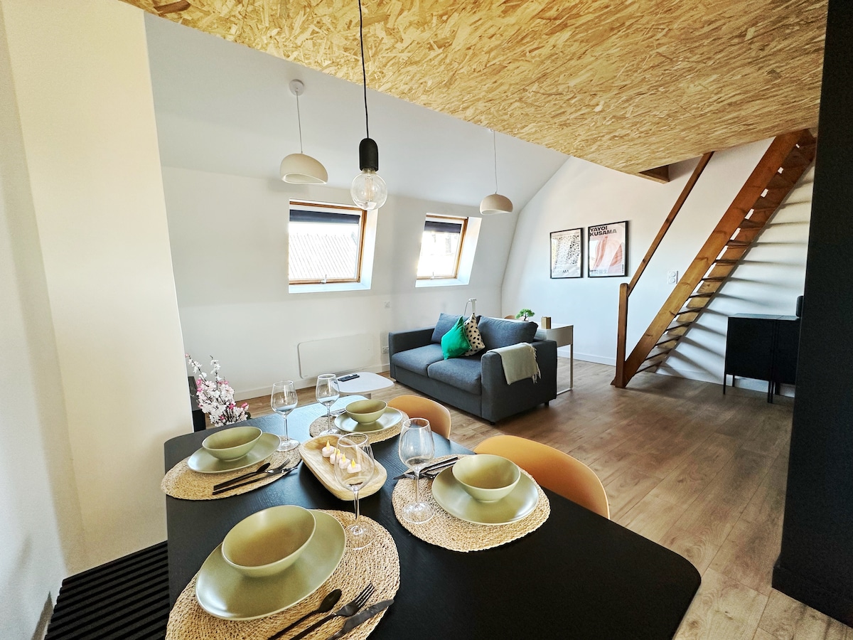 Le Zen Kyoto est un appartement spacieux avec mezzanine, offrant confort et tranquillité à Lambersart. Situé à proximité de Lille et des centres technologiques, il est parfait pour ceux qui recherchent un séjour calme et bien positionné. Profitez de l'accès aux commerces et transports pour un séjour pratique.