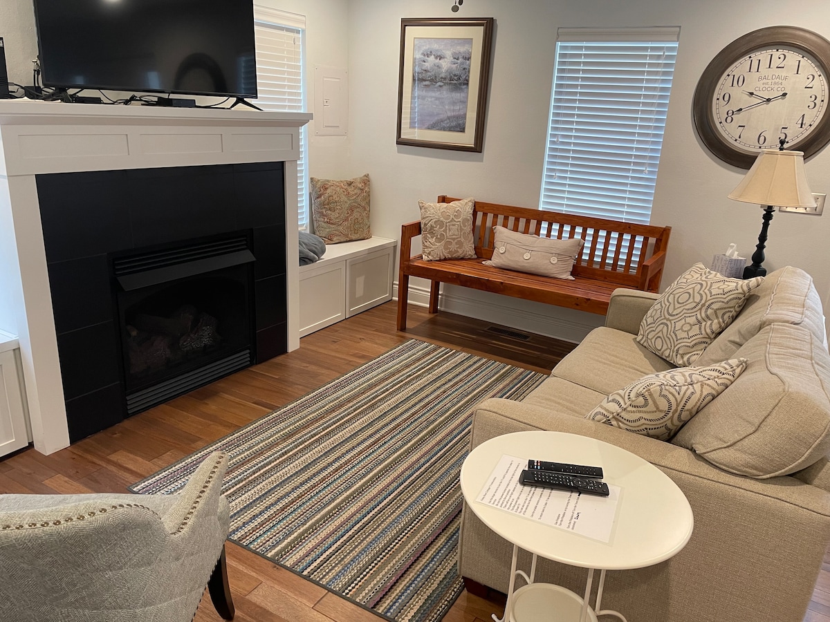 Tucked away in a quiet and secluded cul-de-sac, Cunningham Cottage is surrounded by a well-manicured garden filled with beautiful plants and flowers - the perfect environment for bird-watching and peaceful relaxation. The cottage receives plenty of natural light through its large bay window and is equipped with a fireplace, king bed, and a Smart TV. This unit has been thoughtfully designed for tourists, couples, and professionals, and is handicap accessible.