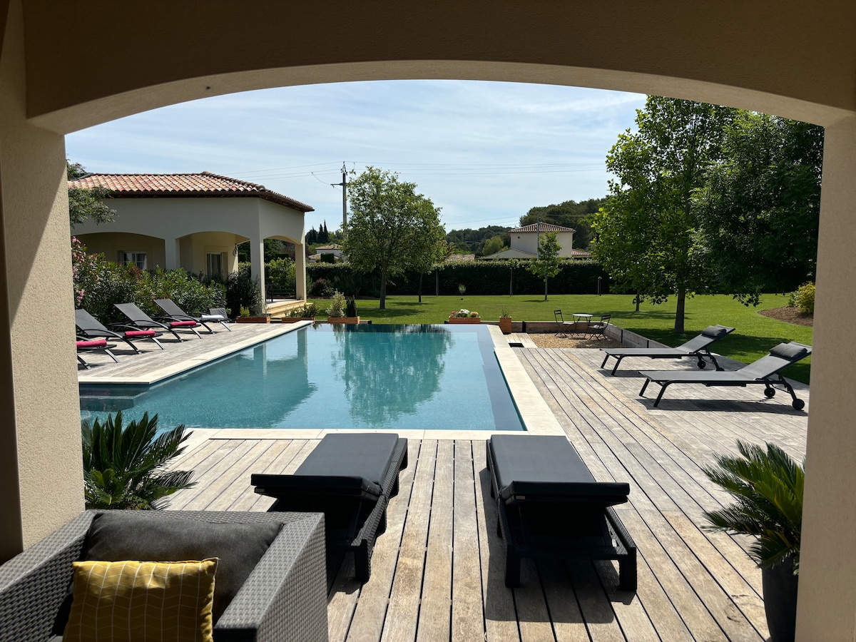 Venez vous détendre dans cette suite neuve de 65 m2 sur un terrain de 4000 m2 clôturé dans un quartier résidentiel très calme et profiter de sa piscine . Cette location est attenante à notre résidence principale mais totalement indépendante. A 20 minutes d'Aix en Provence et à moins d' 1 Km du centre de notre village provençale de Saint Cannat, elle est idéalement située entre les calanques, le Lubéron et la Camargue. Le logement est entièrement climatisé mais n'est pas conçu pour les enfants