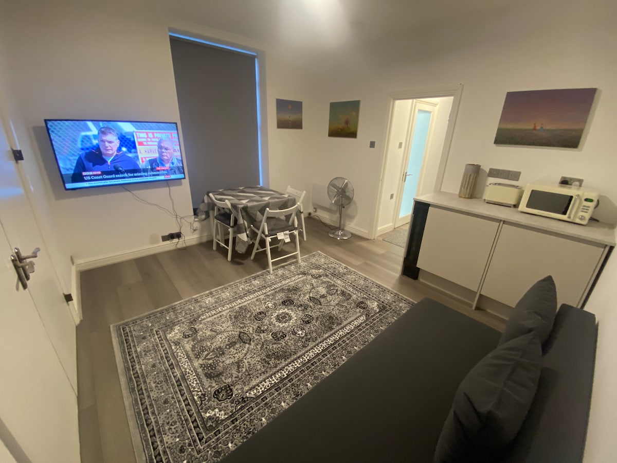 This fantastic one-bedroom apartment has just been completely refurbished and is finished to a high standard throughout. Benefitting from its own entrance, it further comprises an open plan reception room with modern kitchen, ( including microwave/oven and dishwasher) open fireplace,good sized double bedroom with fitted wardrobes and a smart en suite shower room. Wi-fi, hairdryer, wardrobes and utility area