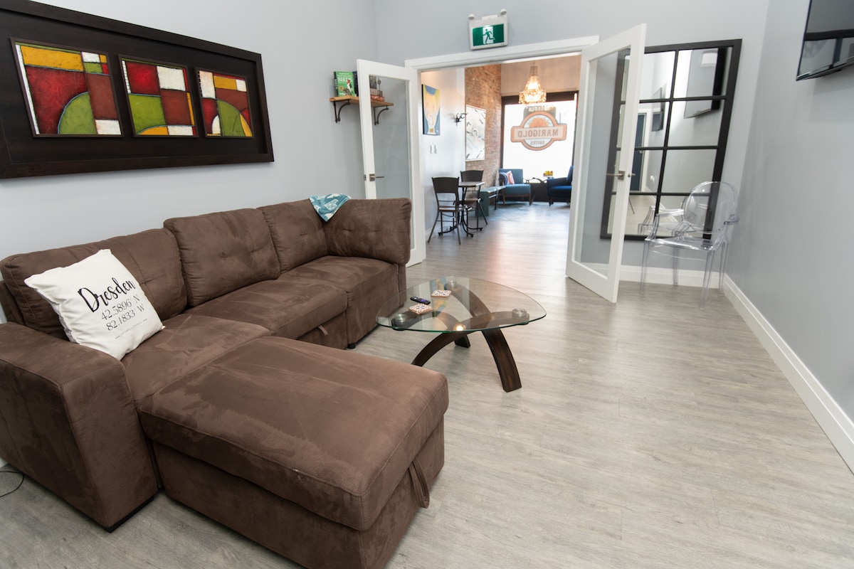 Forget your worries in this spacious and serene space. The suite features a separate entrance, offering complete privacy within the main structure of the house. Outside is a secluded firepit area surrounded by a country view. Catch the sunsets! ✧Twin Pines Orchards & Cider house 5 min walk ✧Shale Ridge Winery 10 min walk ✧Widder Station golf & Country club 5 min drive ✧ Ipperwash Beach 12 min drive ✧ Lambton Heritage Museum 8 Km A modest fee for accommodating pets.